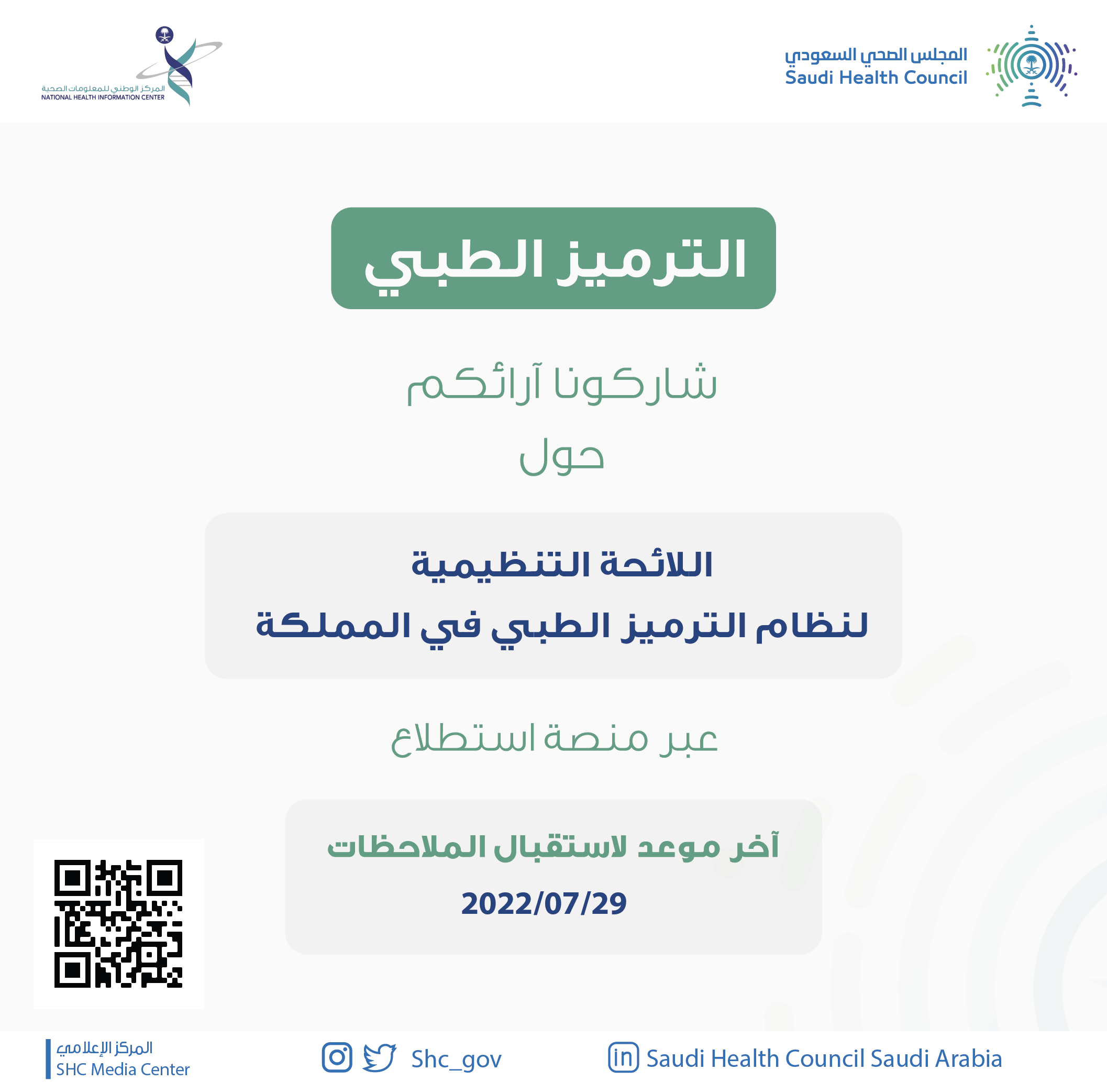 استطلاع حول اللائحة التنظيمية لنظام الترميز الطبي بالمملكة